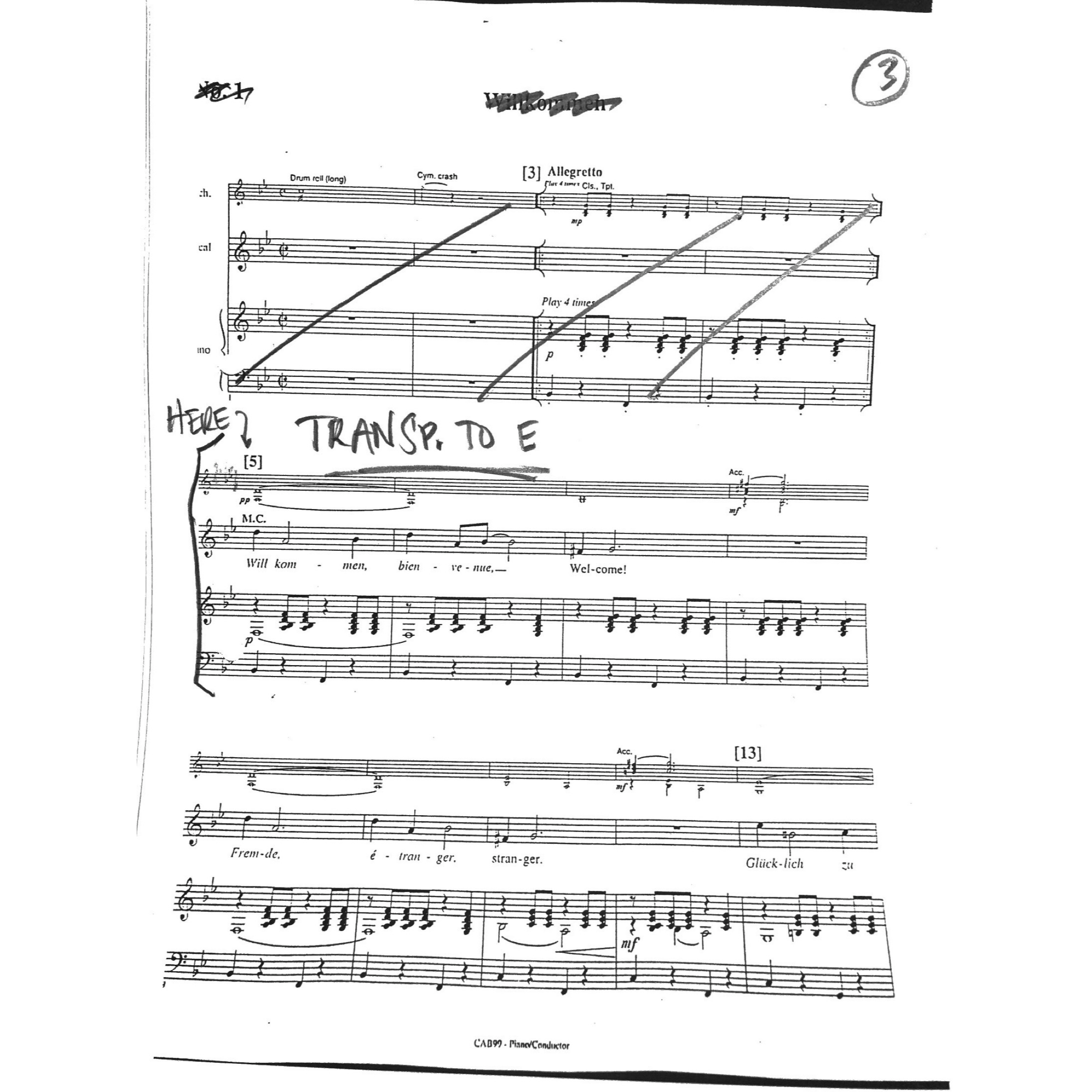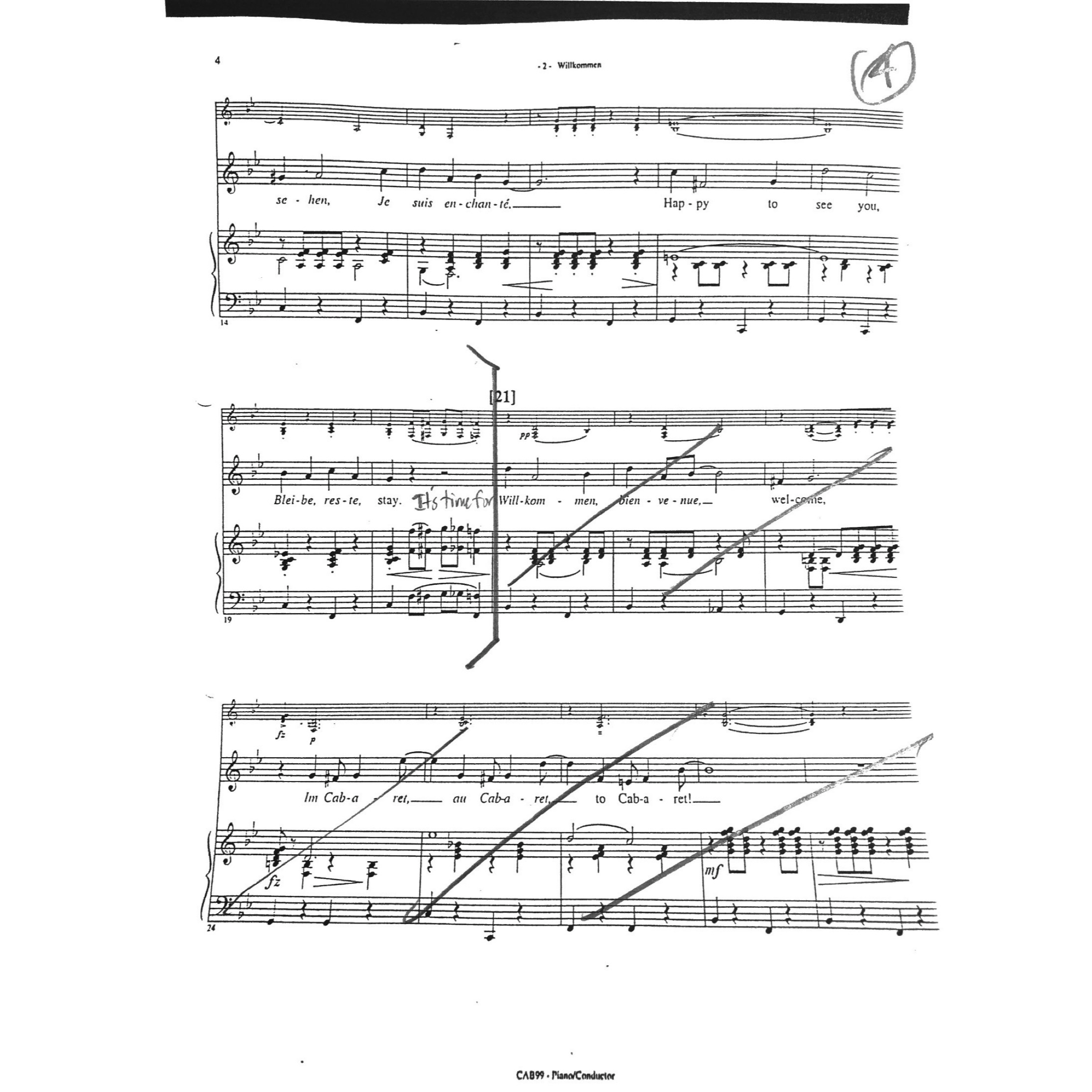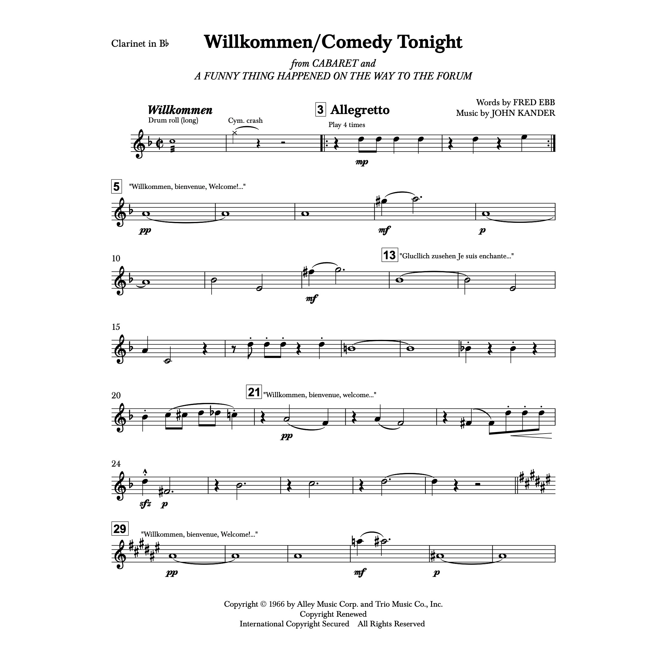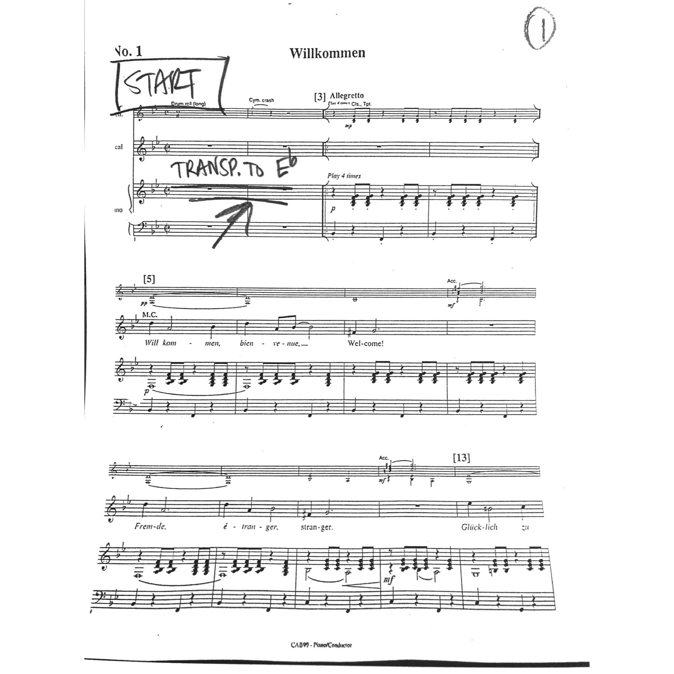 The arrangement was prepared for clarinet, piano and bass as requested. Page turns in parts, as always, were carefully considered.
